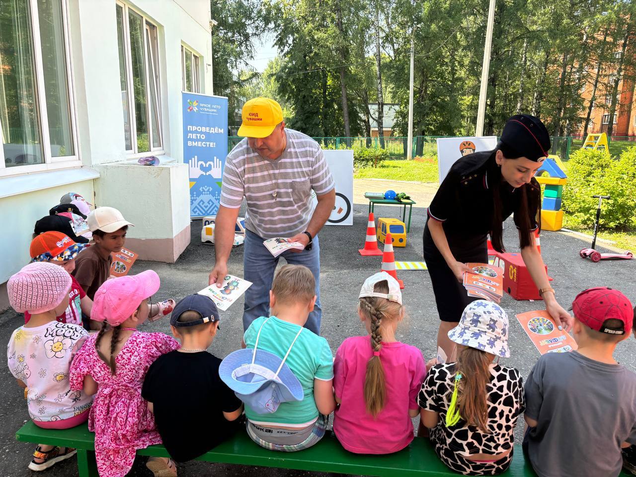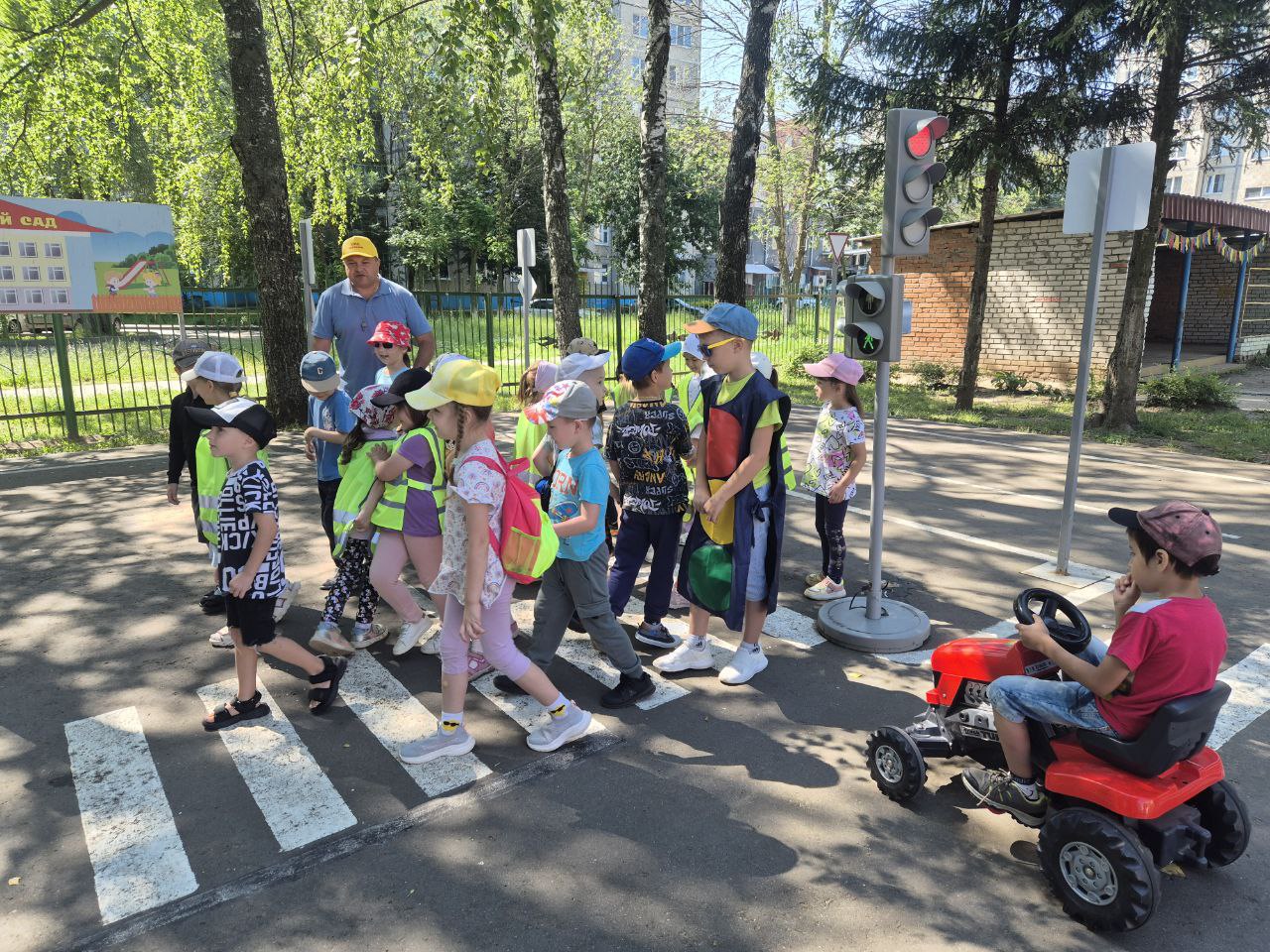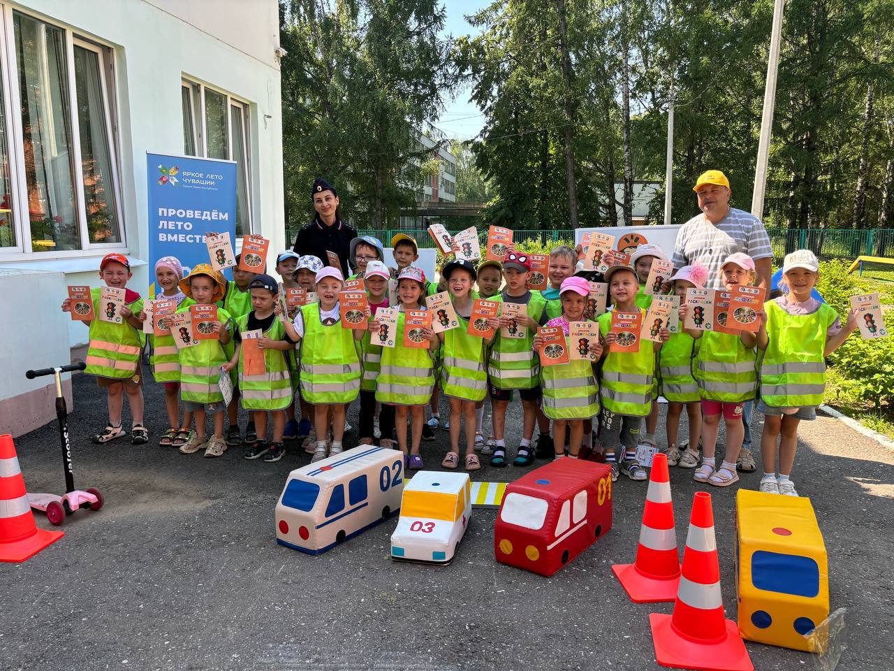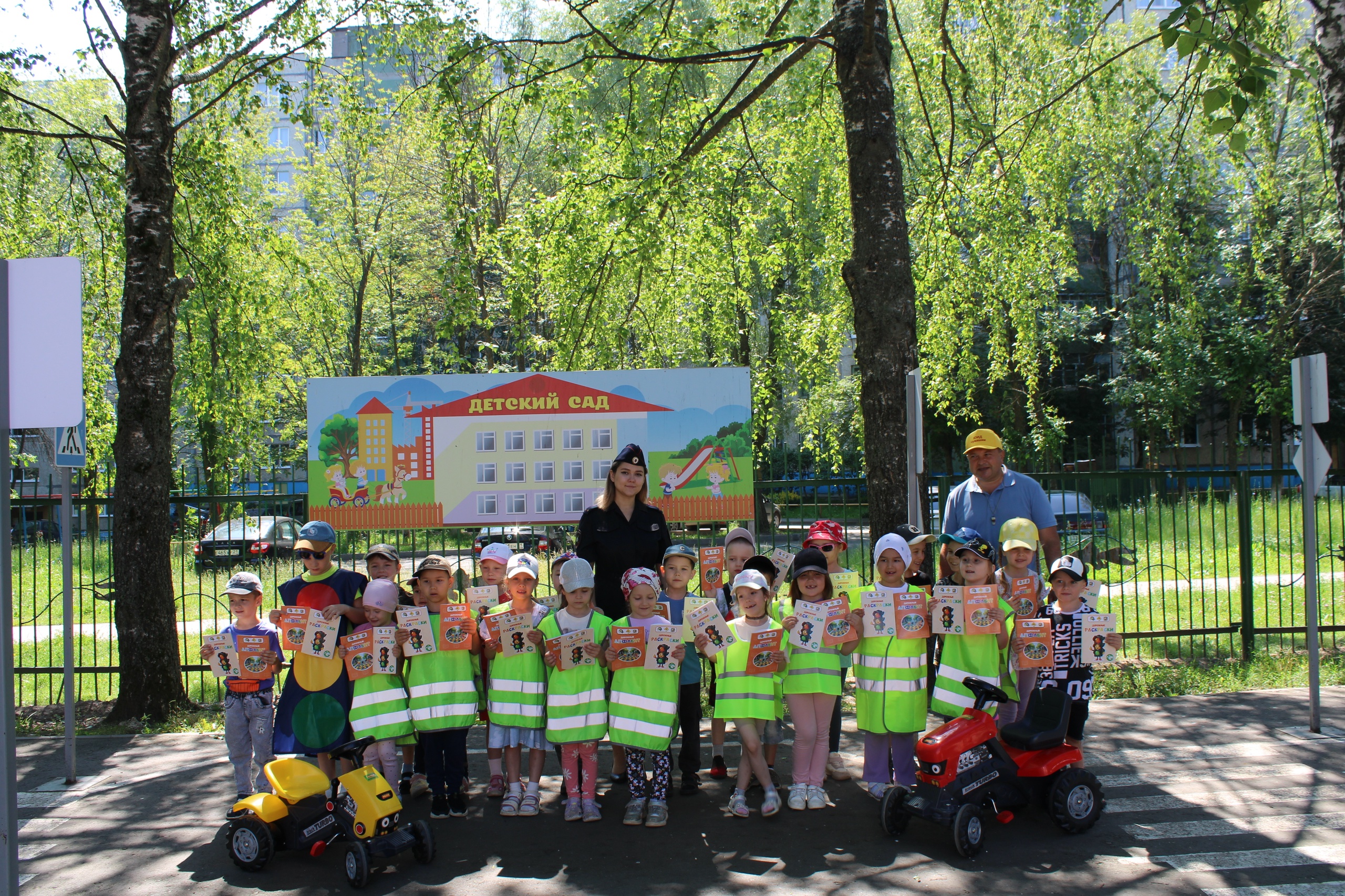 В обоих детских садах по завершении мероприятий детям вручили учебные пособия по правилам дорожной безопасности, раскраски и световозвращающие жилеты.