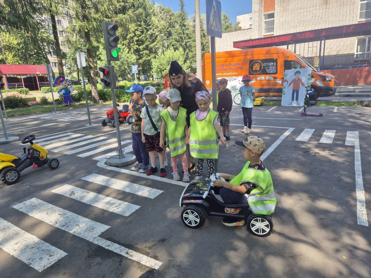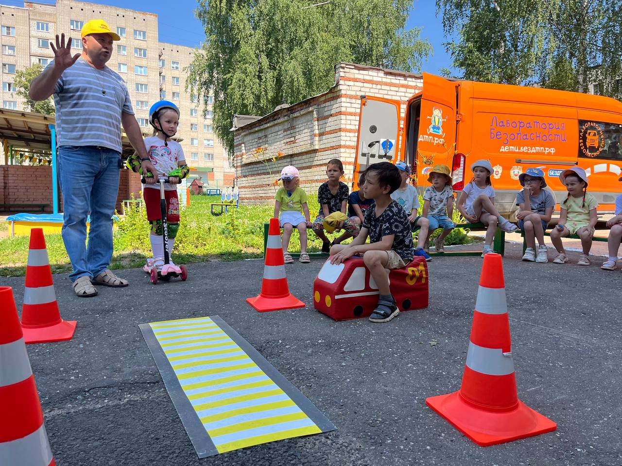 Мобильные комплексы «Лаборатория безопасности» провели занятия по правилам дорожного движения в целях профилактики детского дорожно-транспортного травматизма в двух детских садах города Чебоксары Чувашской Республики.