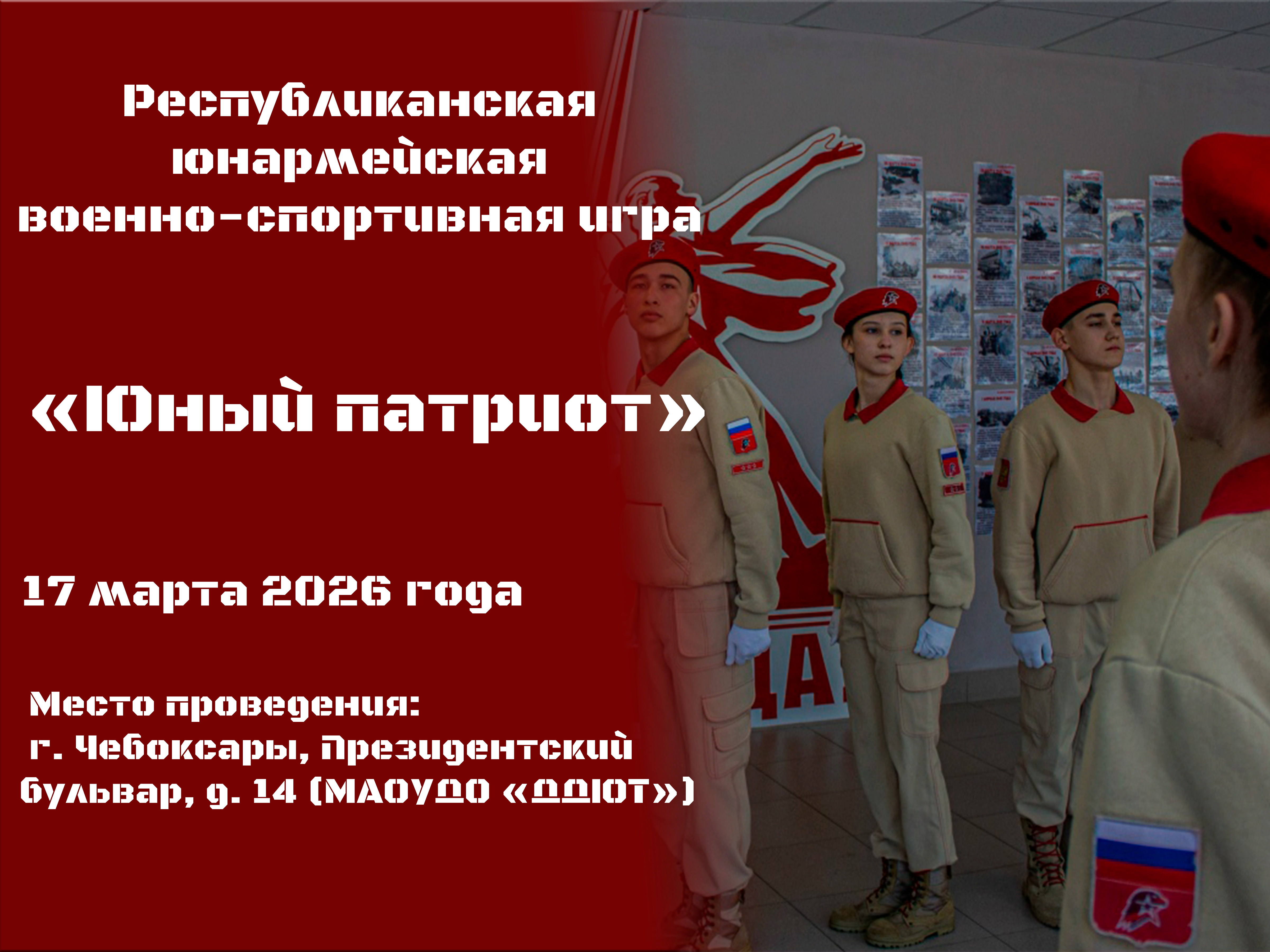 17 марта 2026 года стартует Республиканская юнармейская военно-спортивная игра «Юный патриот» для учащихся 3-5 классов общеобразовательных учреждений Чувашской Республики.