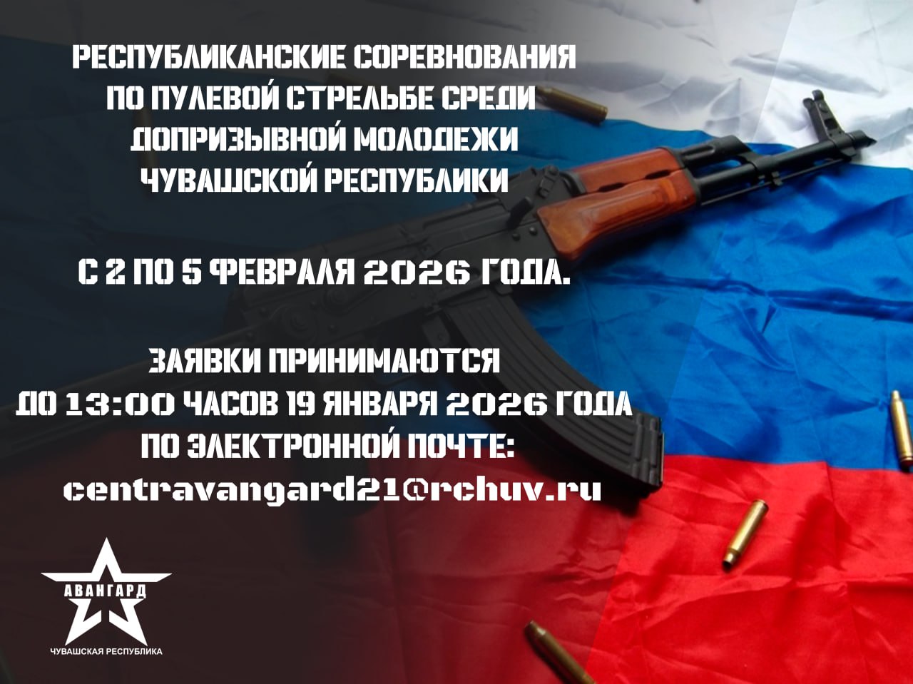 Предварительные заявки принимаются строго до 13:00 часов 19 января 2026 года по электронной почте: centravangard21@rchuv.ru