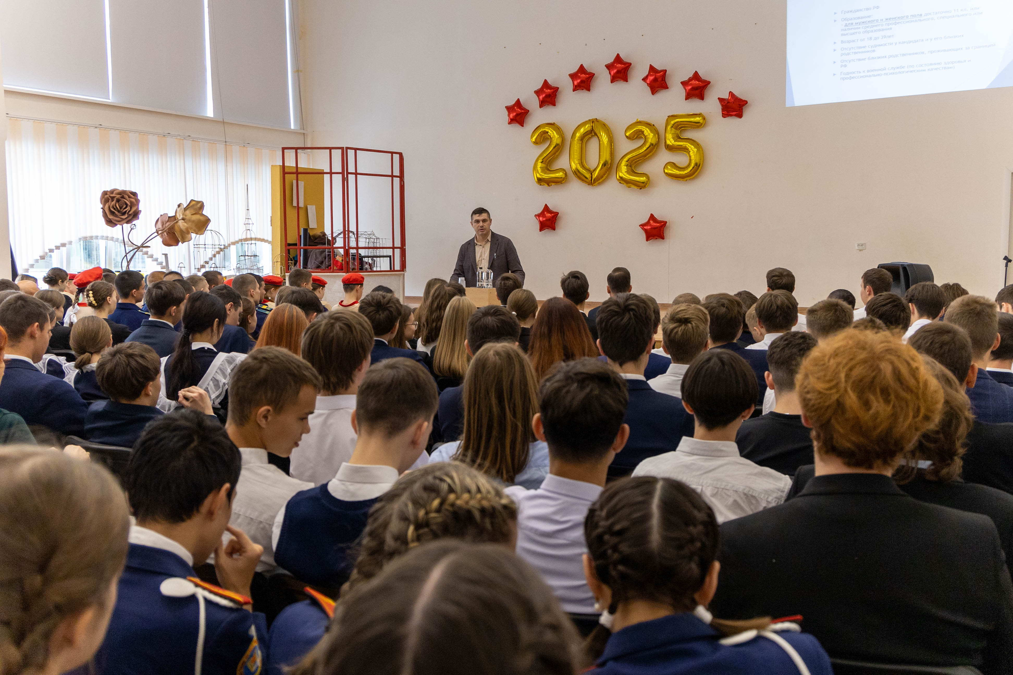 2 октября 2025 года в школе №43 города Чебоксары состоялась профориентационная встреча для старшеклассников. Учеников 10 и 11 классов пригласили, чтобы рассказать им о военной службе по контракту в пограничных органах ФСБ России г. Сочи. В ходе встречи сотрудники рассказали о преимуществах работы в пограничных органах ФСБ, что нужно для того, чтобы поступить на службу в пограничные органы.